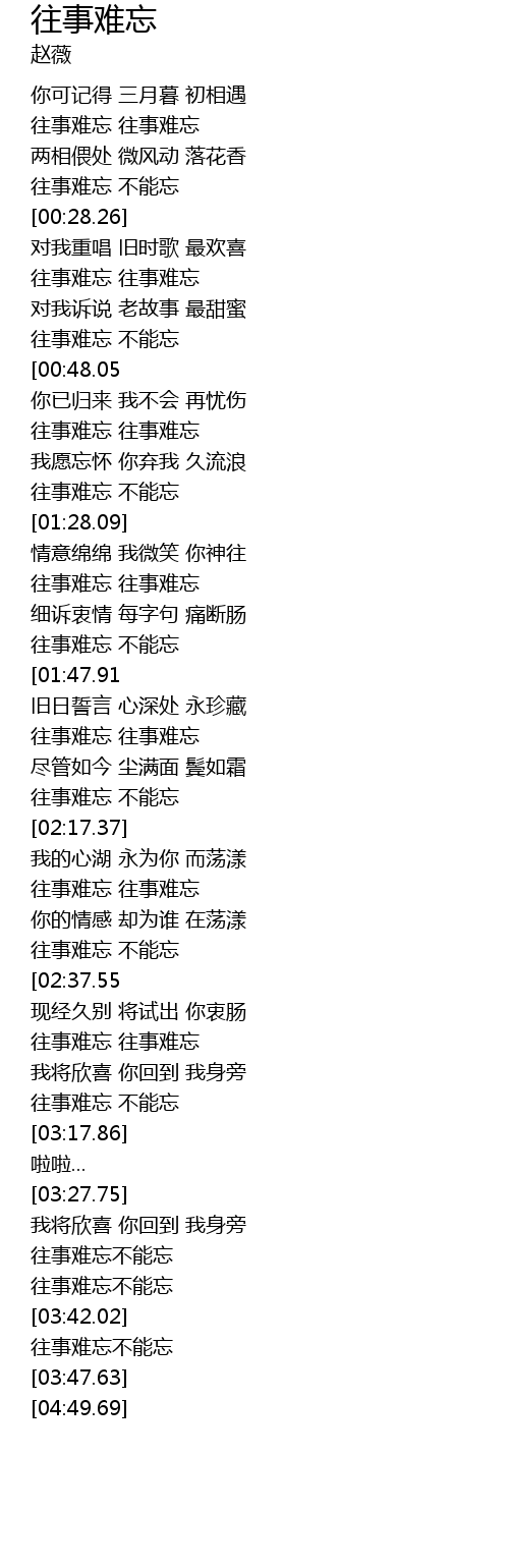 | [01:34.11] | wǎng shì nán wàng wǎng shì nán wàng |