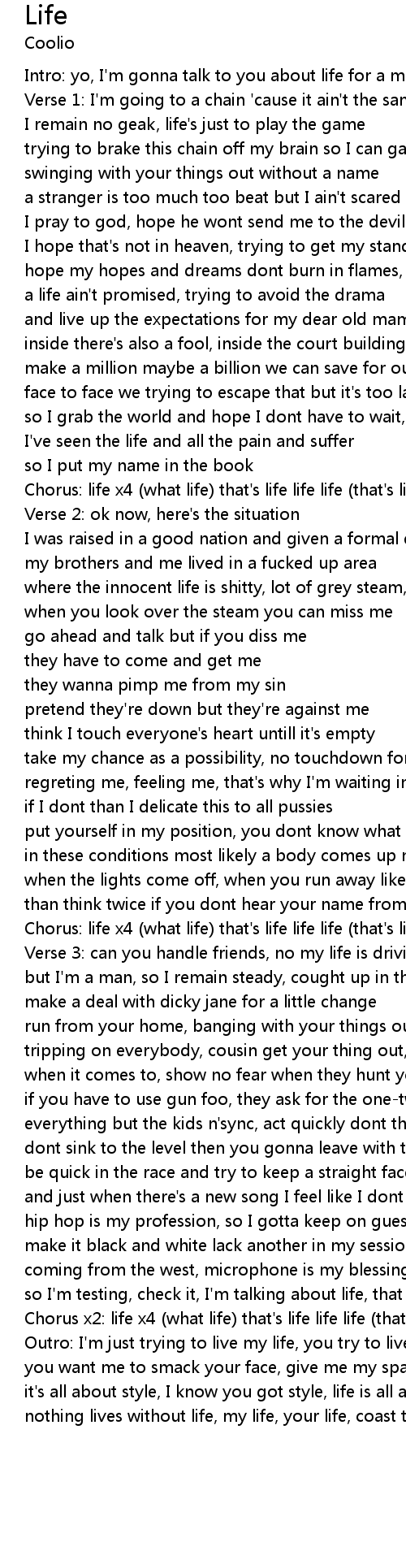 Chorus: life x4 (what life) that's life life life (that's life) |