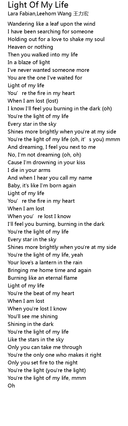 | [01:27.020] | You' re the light of my life oh, it' s you mmm |