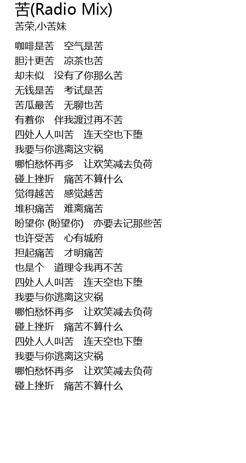 | [01:00.74] | 觉得越苦 感觉越苦 |