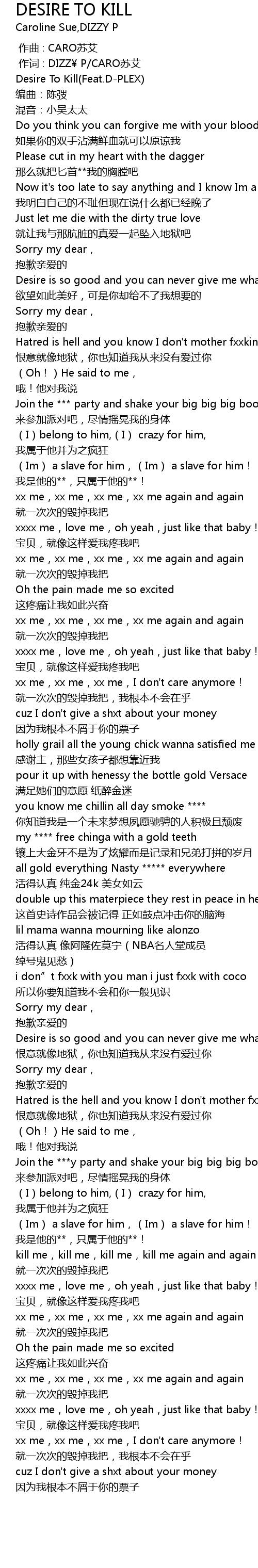 | [00:03.00] | Desire To Kill(Feat.D-PLEX) |
