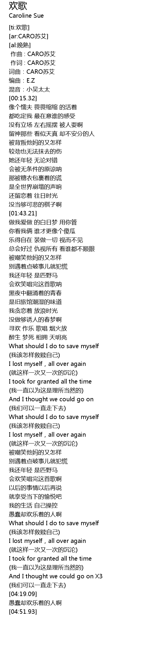 | [00:00.000] | zuo qu : CARO su ai |