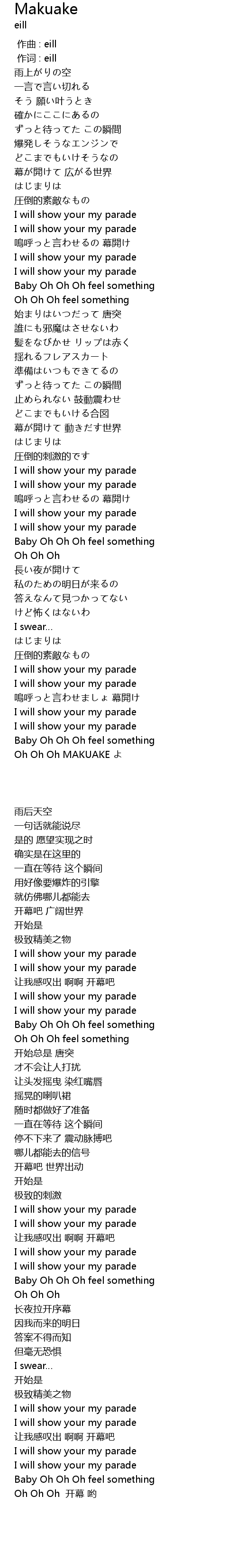| [03:11.339] | Oh Oh Oh MAKUAKE よ |