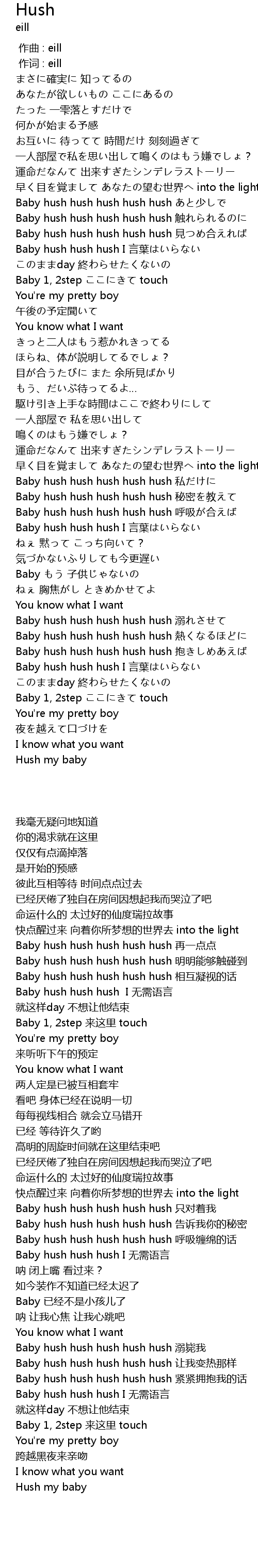 | [03:01.254] | Baby hush hush hush hush hush nì |