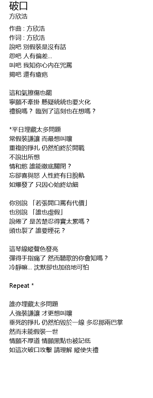 | 作词 : 方欣浩 | |