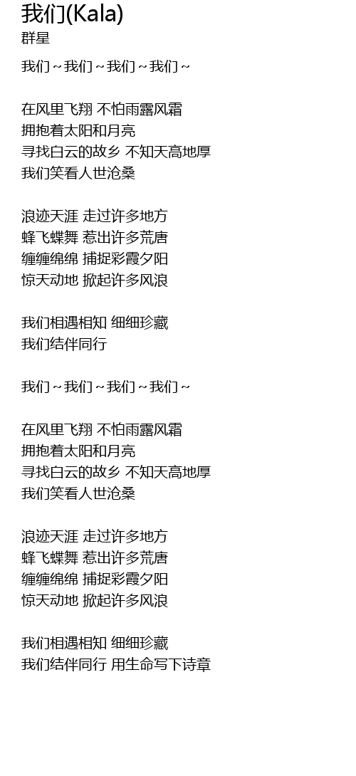 | Song | 我们(Kala) |