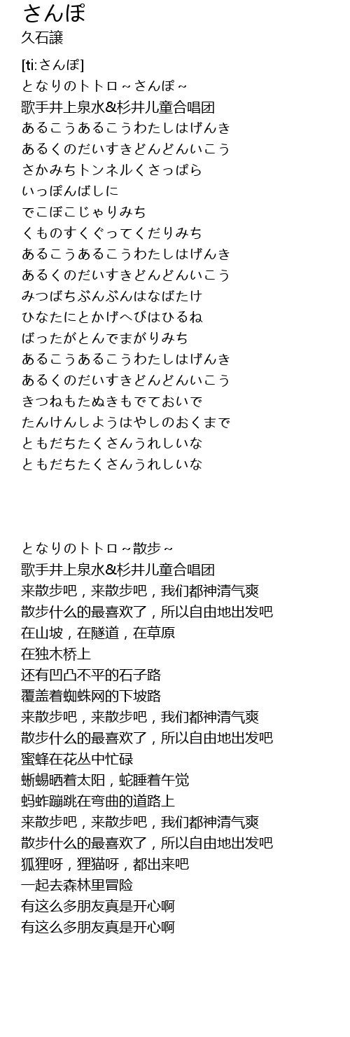 | [00:03.695] | となりのトトロ~さんぽ~ |