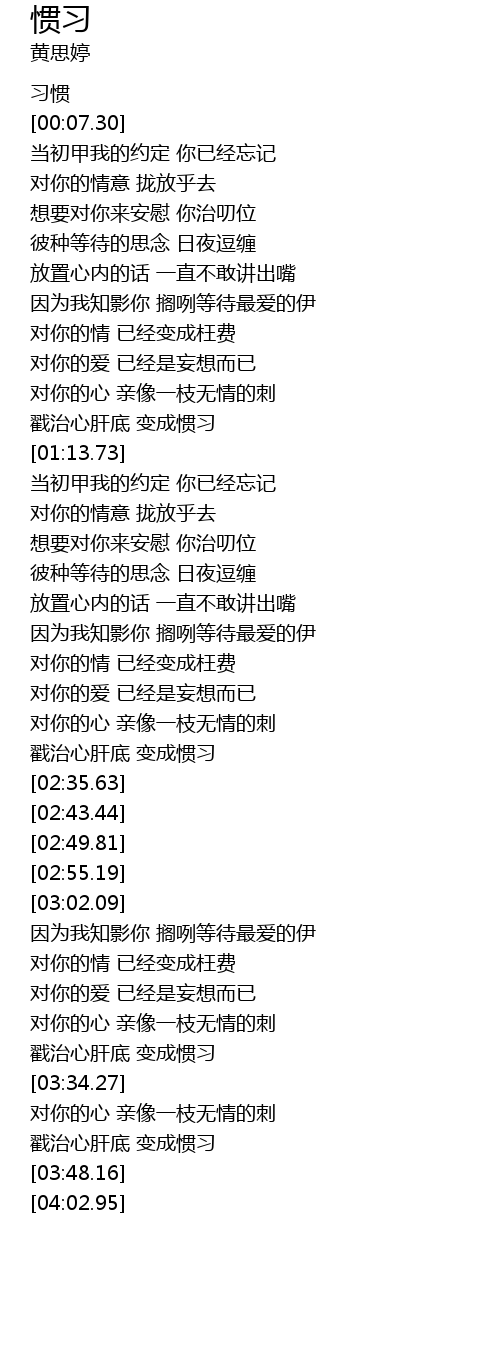 [03:30.11] chuō zhì xīn gān dǐ biàn chéng guàn xí