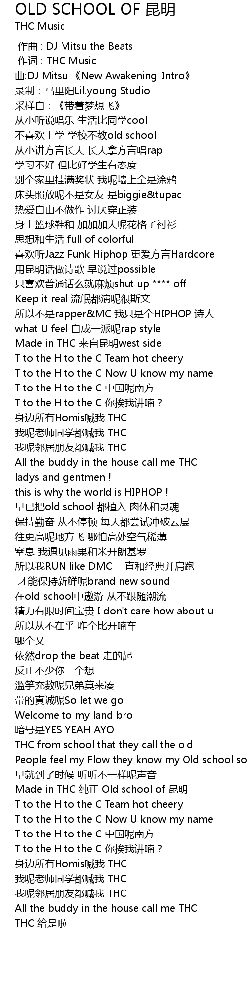 | [01:49.58] | Made in THC 纯正 Old school of 昆明 |