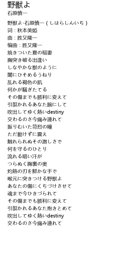 | [00:00.00] | 野獣よ-石原慎一(しはらしんいち) |