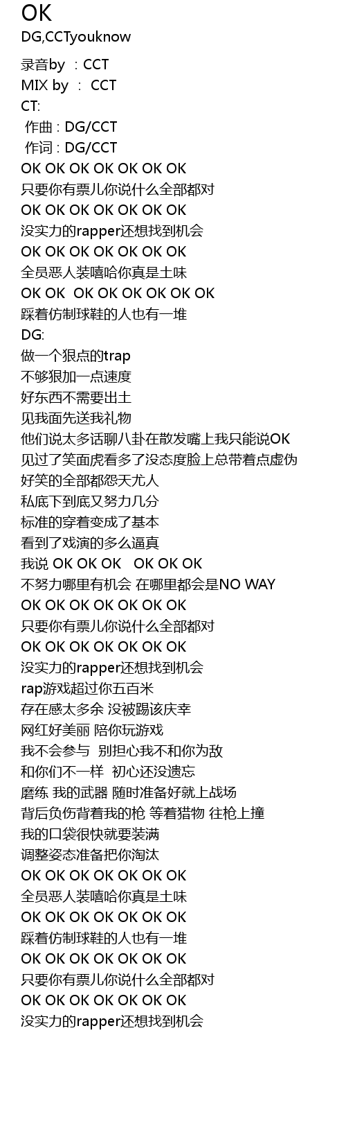 | [01:17.97] | 我说 OK OK OK OK OK OK |