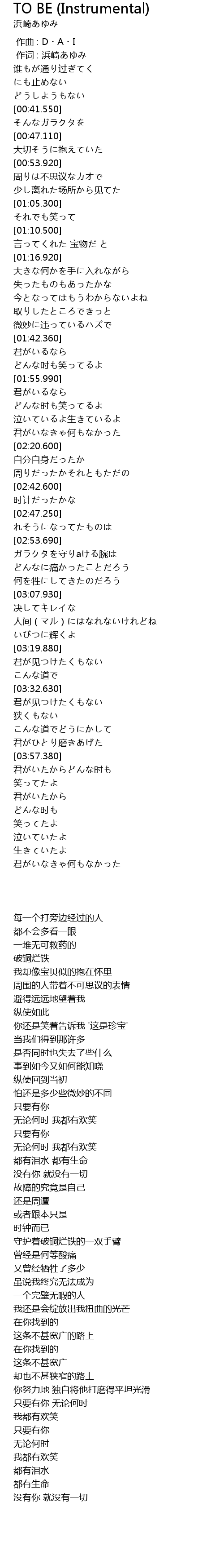TO BE (Instrumental) Lyrics