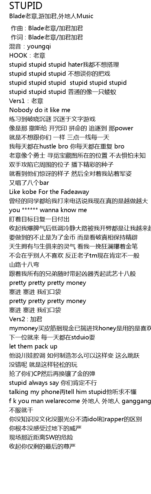 | [00:14.00] | stupid stupid stupid hater我都不想搭理 |