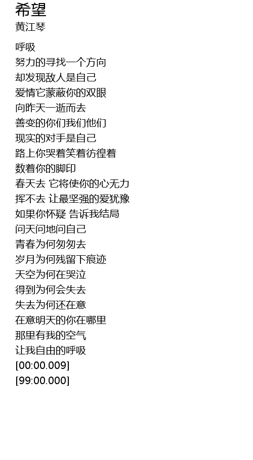 | [01:31.93] | 让我自由的呼吸 |