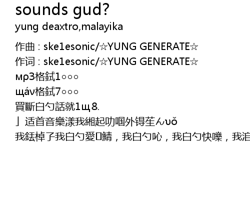 | 作词 : ske1esonic/☆YUNG GENERATE☆ | |