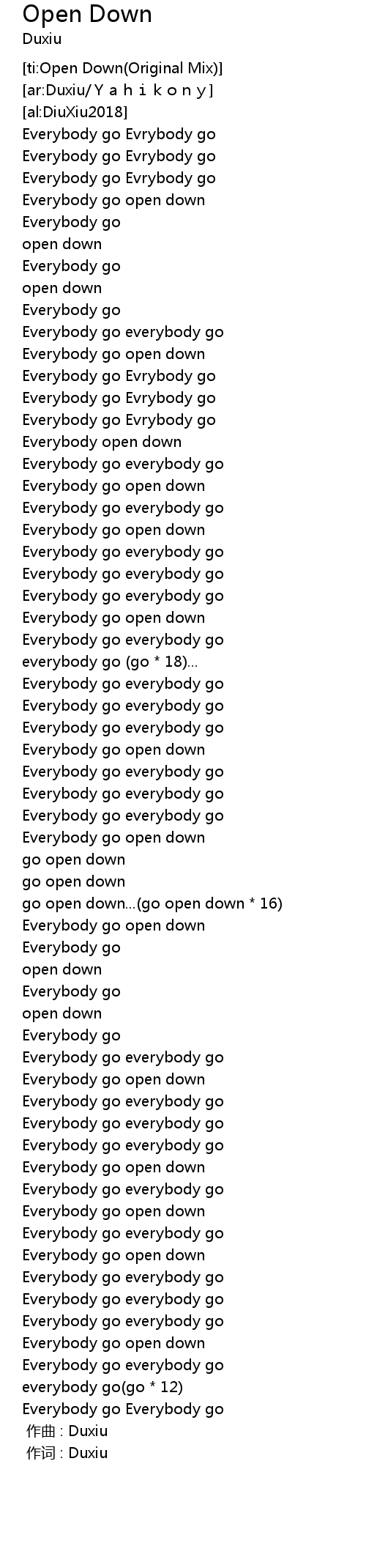 | [00:00.000] | 作曲 : Duxiu |
