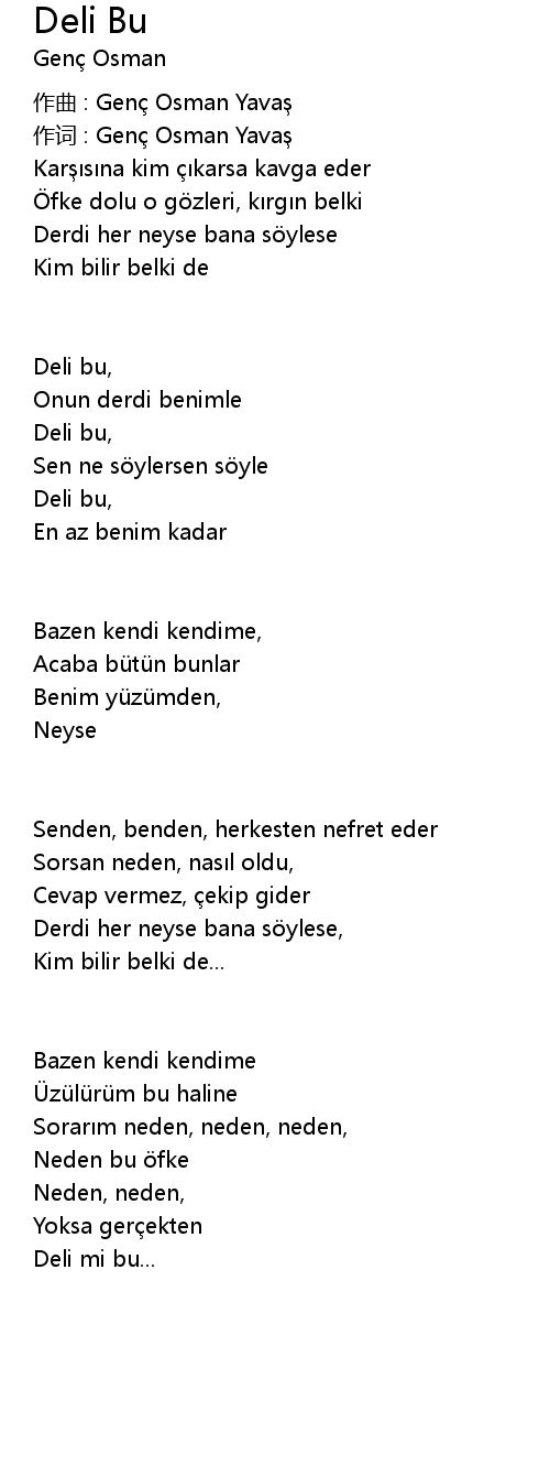 | 作词 : Genç Osman Yavaş | |