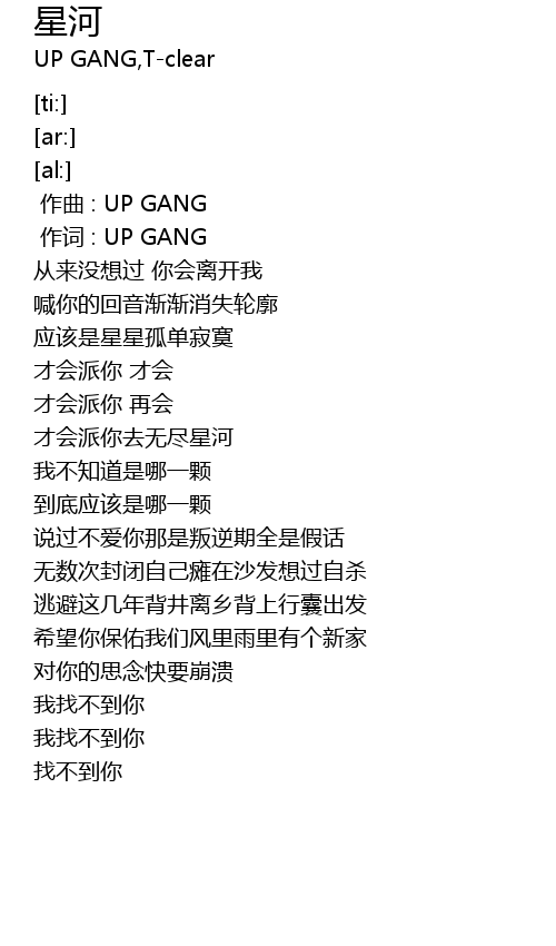 | [00:45.54] | cái huì pài nǐ qù wú jìn xīng hé |