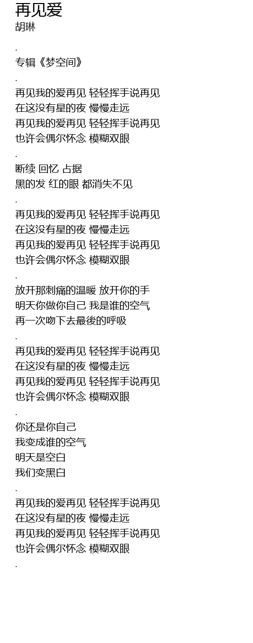 | [03:18.41] | 再见我的爱再见 轻轻挥手说再见 |