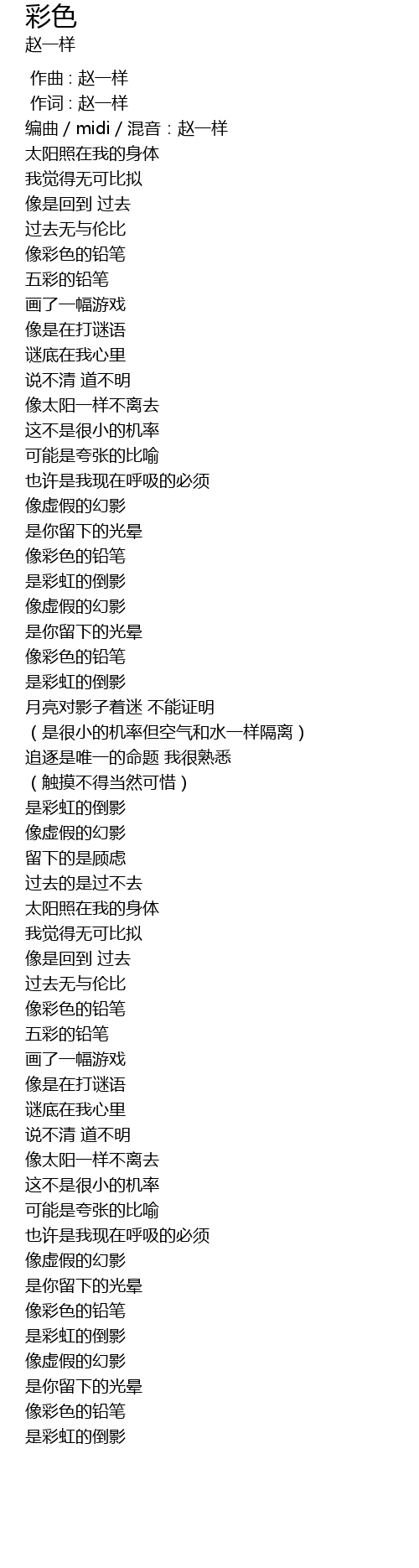 | [00:00.752] | 编曲/midi/混音:赵一样 |