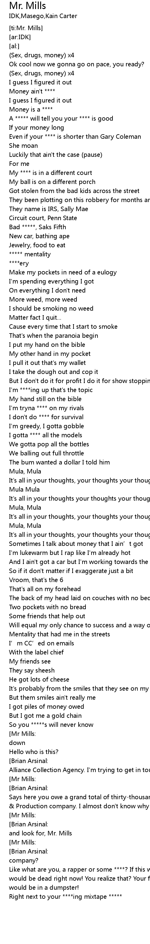 | [03:31.83][Brian Arsinal:] | You the type of that mother ers just come and look for, Mr. Mills |