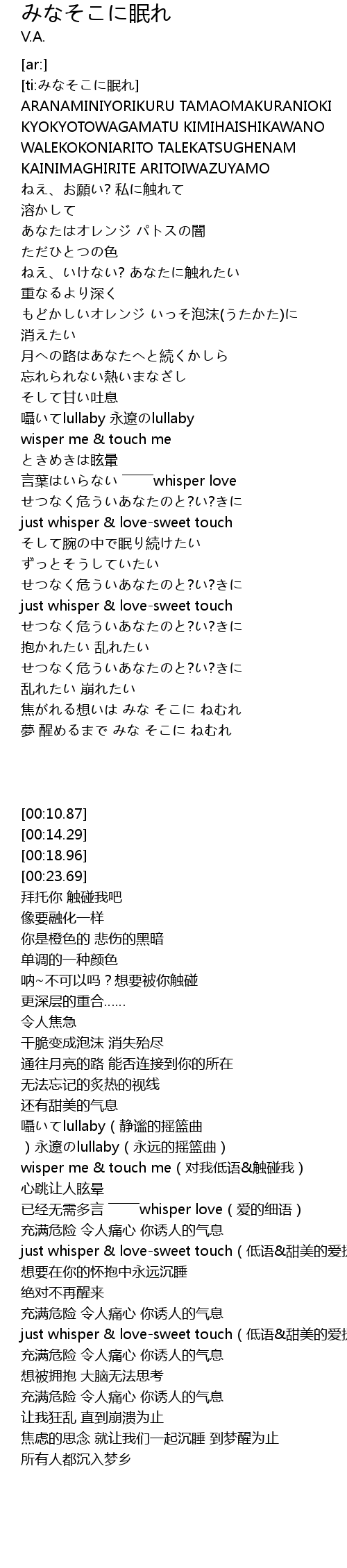 | [02:01.71] | 囁いてlullaby 永遼のlullaby |