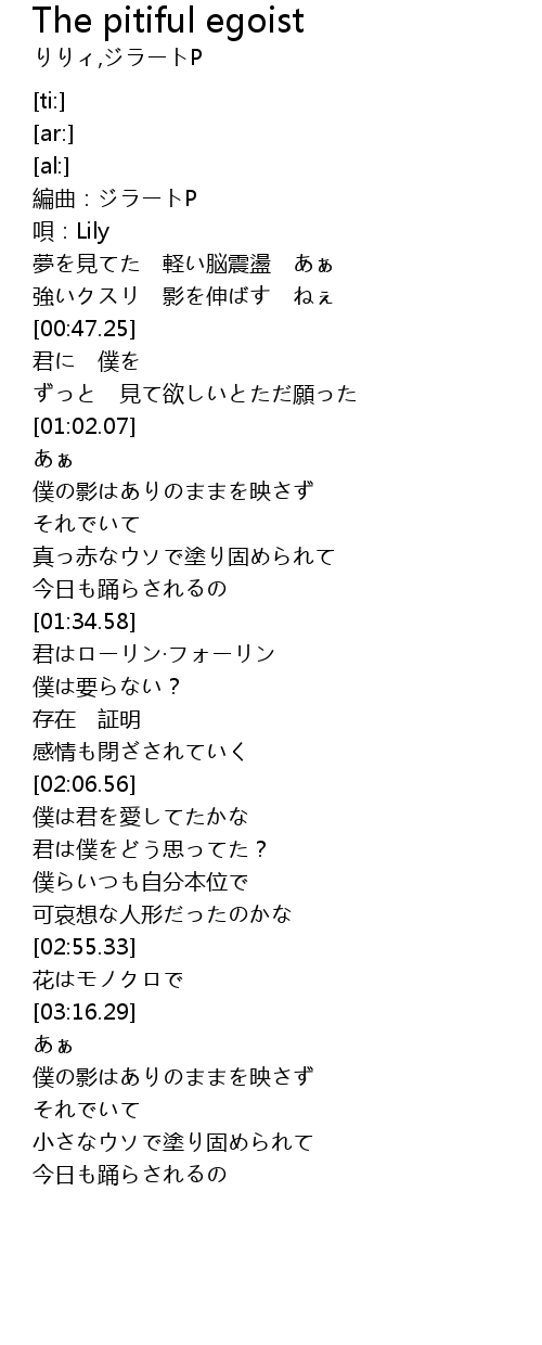 | [01:04.37] | 僕の影はありのままを映さず |