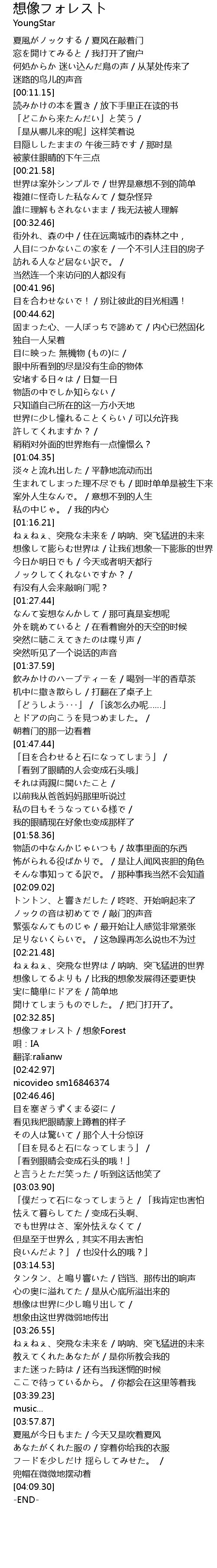| [02:34.14] | 想像フォレスト / 想象Forest |