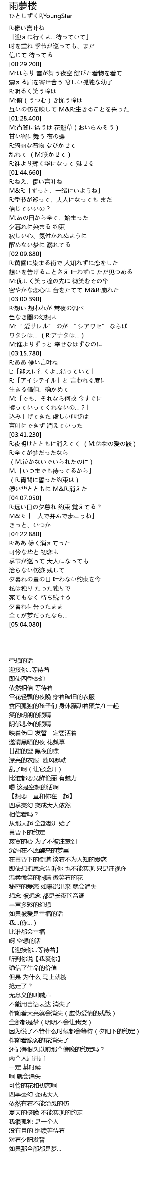 | [03:55.890] | M:「いつまでも待ってるから」 (R:宵闇に誓った约束は) |