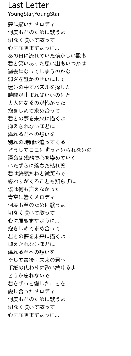| [03:12.49] | 手紙の代わりに歌い続けるよ |
