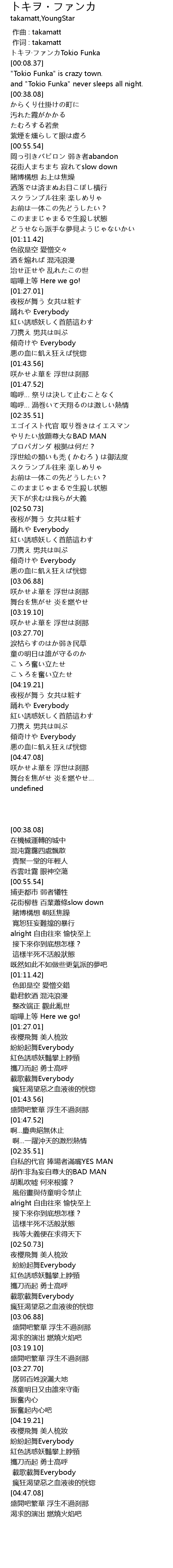 | [00:20.56] | " Tokio Funka" is crazy town. |