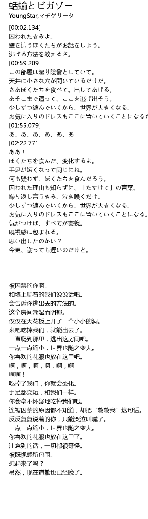 | [02:36.572] | ぼくたちを食んだ、変化するよ。 |