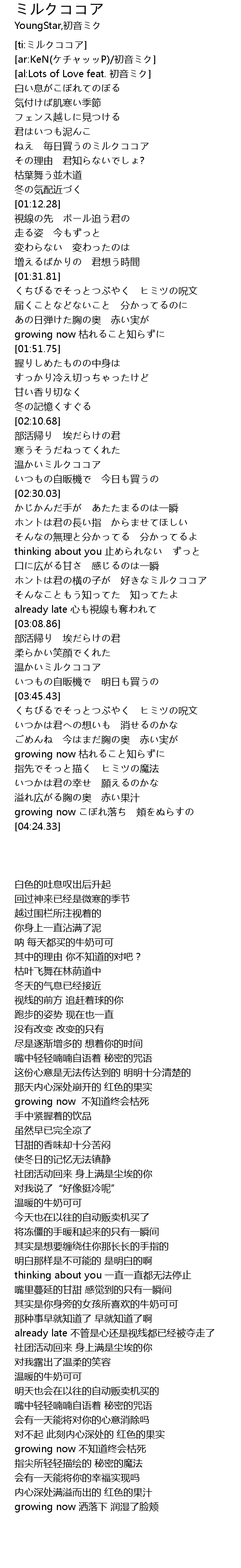 | [02:20.64] | 温かいミルクココア |