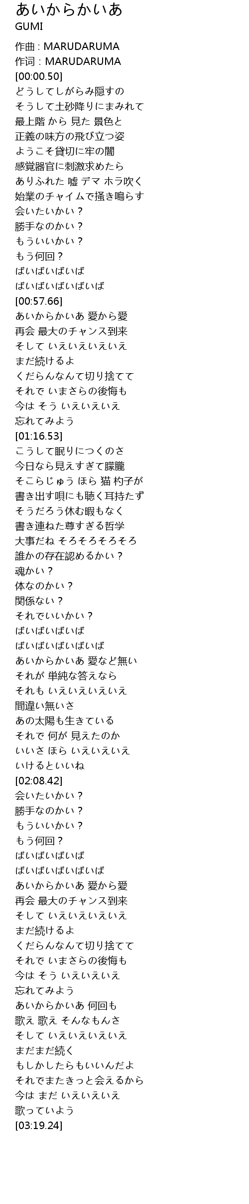| [02:43.21] | あいからかいあ 愛から愛 |