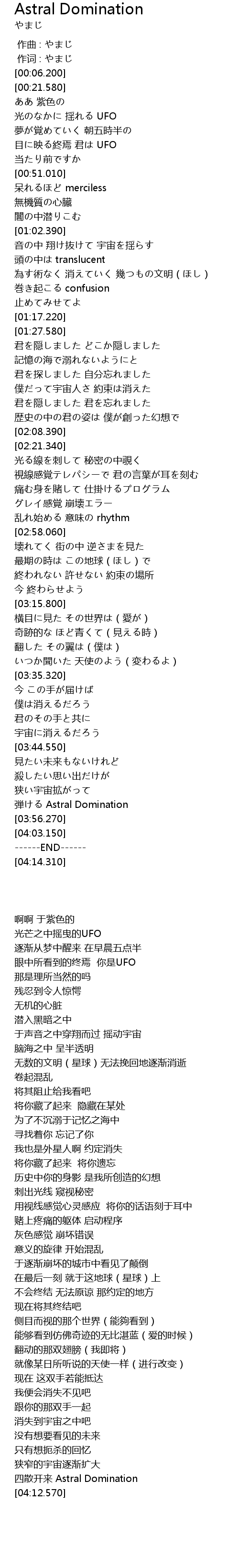 | [00:41.140] | 目に映る終焉 君は UFO |