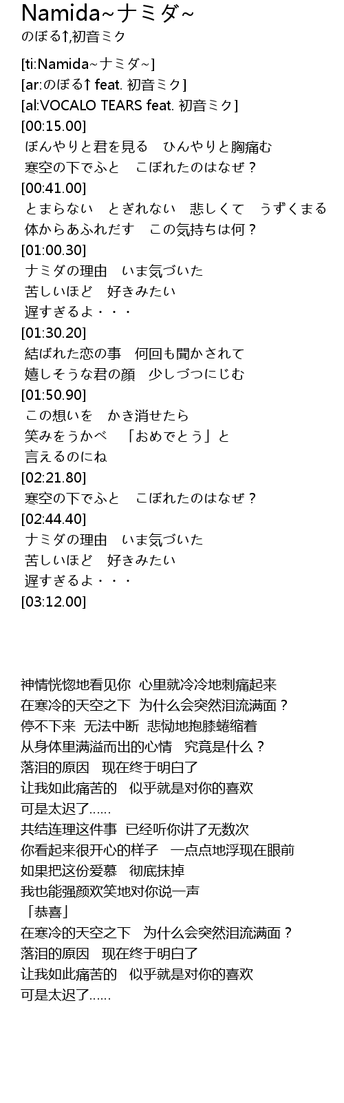 | [02:45.10] | ナミダの理由 いま気づいた |
