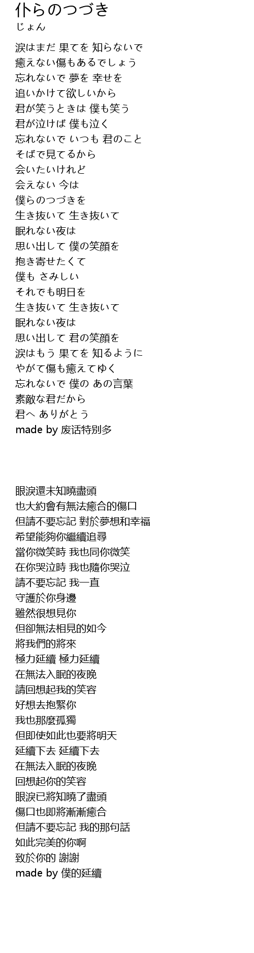| [00:59.12] | 僕らのつづきを |