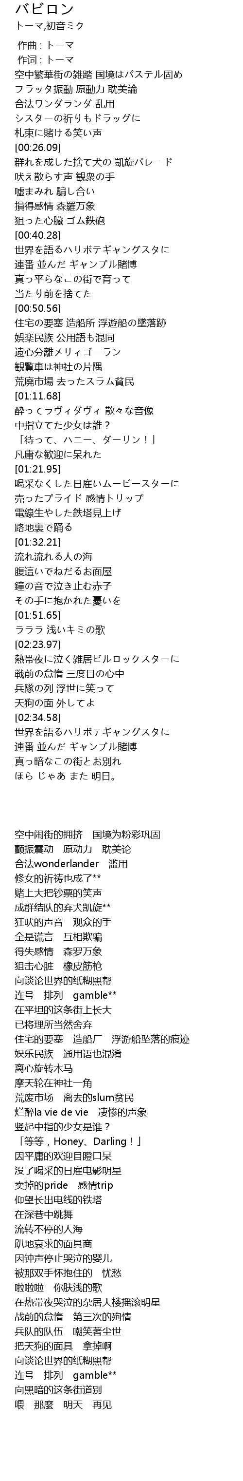 | [00:15.35] | 空中繁華街の雑踏 国境はパステル固め |
