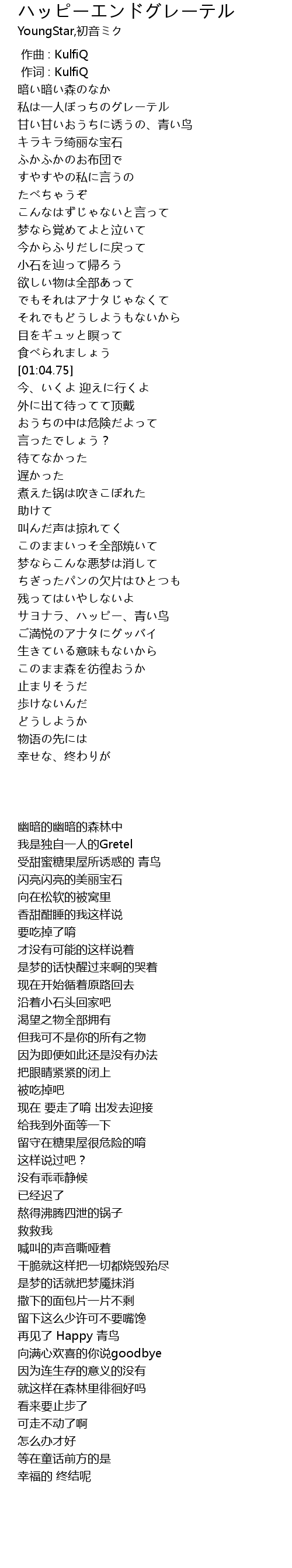 | [01:43.23] | サヨナラ、ハッピー、青い鸟 |