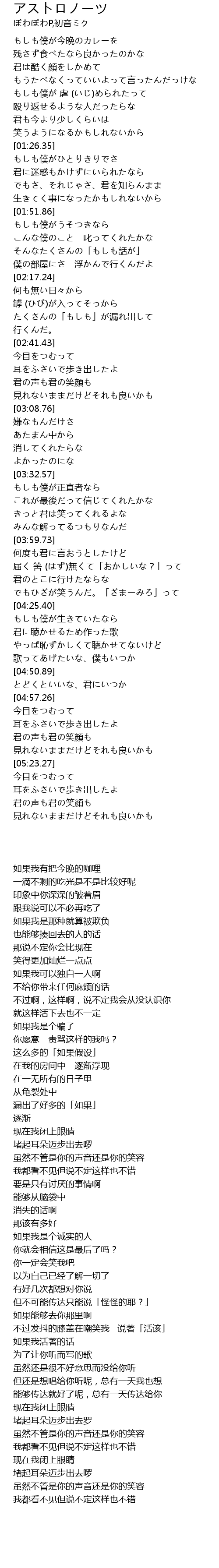 | [00:23.03] | もうたべなくっていいよって言ったんだっけな |