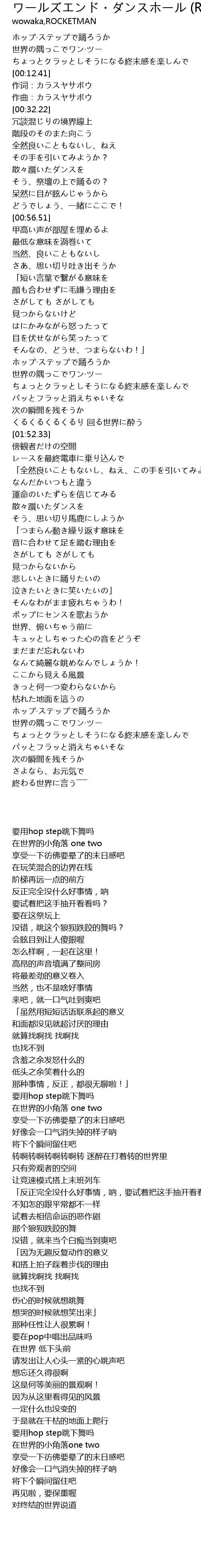 | [01:32.35] | 世界の隅っこでワン·ツー |