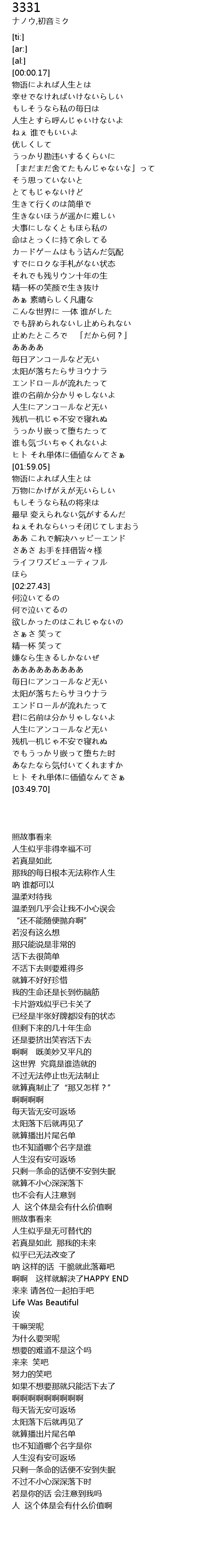 | [03:20.36] | 嫌なら生きるしかないぜ |