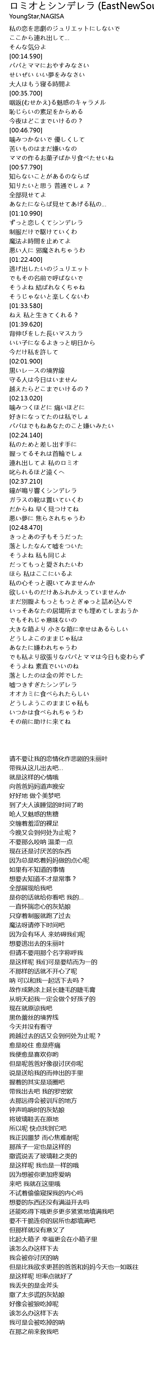 | [02:37.860] | 鐘が鳴り響くシンデレラ |