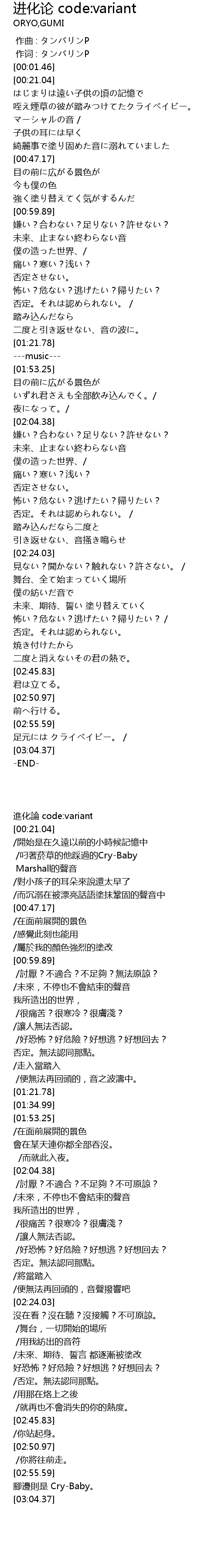 | [02:34.37] | 怖い?危ない?逃げたい?帰りたい? / |