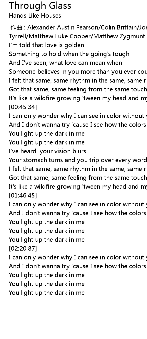 | [01:02.75] | You light up the dark in me |