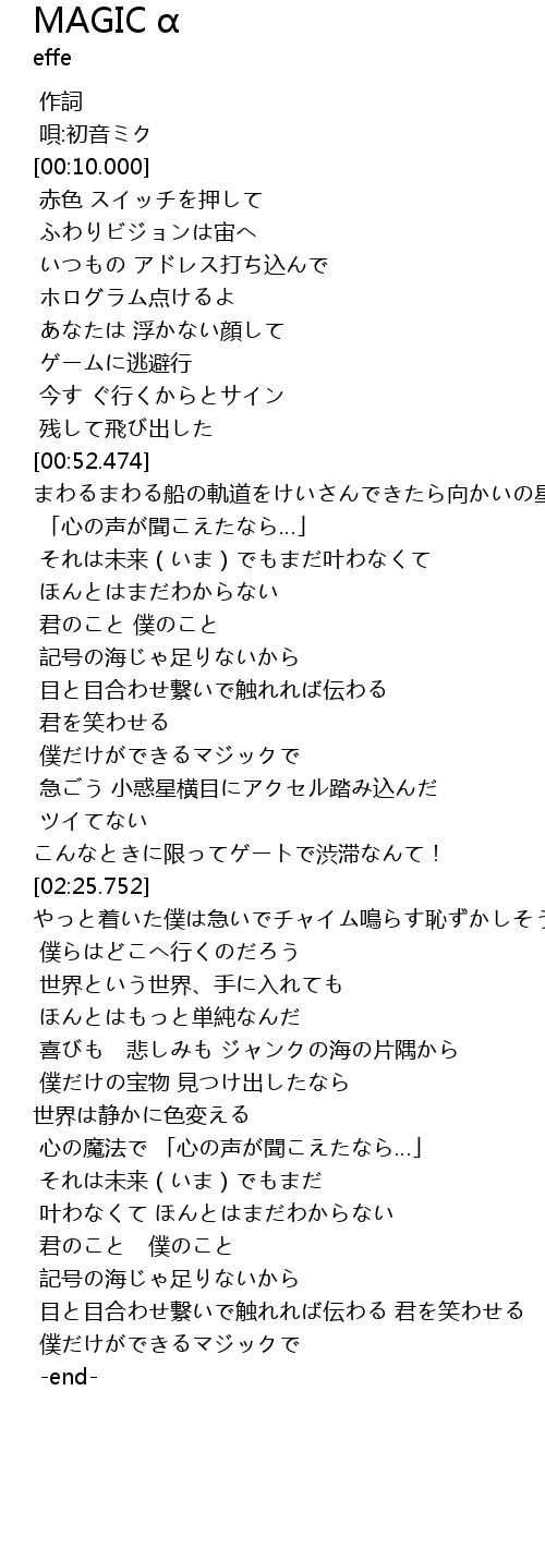 | [03:03.950] | 心の魔法で 「心の声が聞こえたなら…」 |