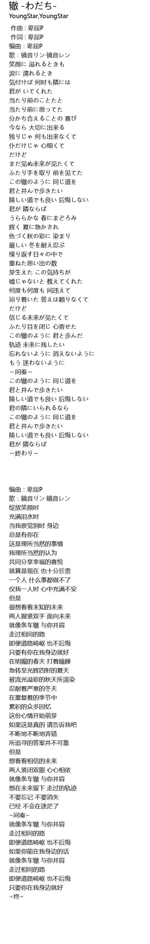 この辙のように 君と歩んだ |