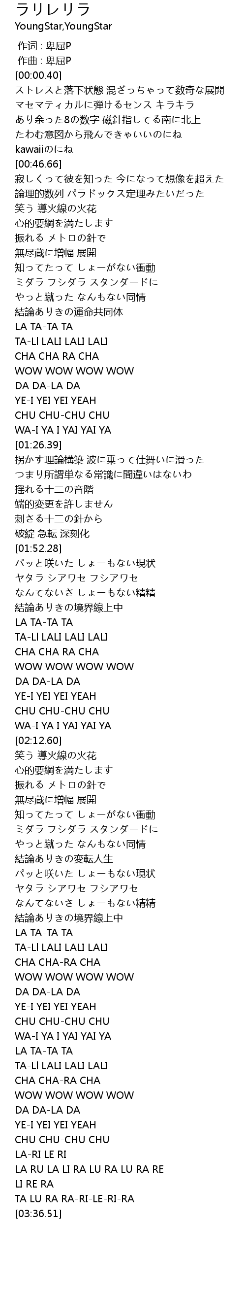 | [03:21.74] | WAI YA I YAI YAI YA |