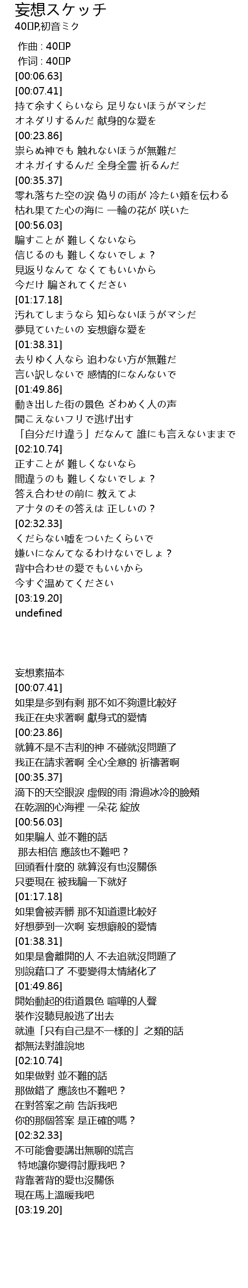 | [01:33.13] | 夢見ていたいの 妄想癖な愛を |