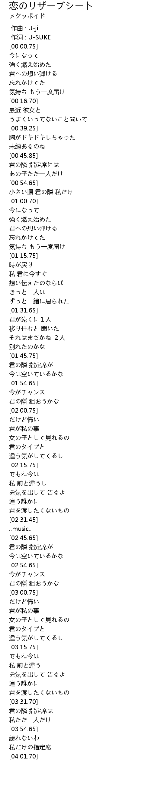 作词 : U-SUKE |